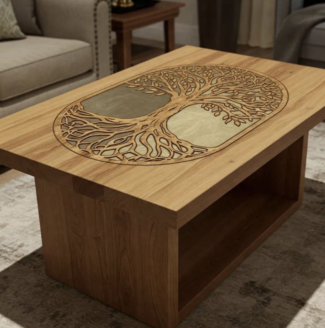 מתוך שילוב של עץ מלא, אפוקסי, מתכות או אבן בשילוב ייחודי של חריטה ושיבוץ – נולדת יצירה שמרגישה אמיתית, עמוקה, ונכונה למקום.